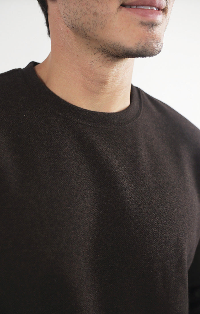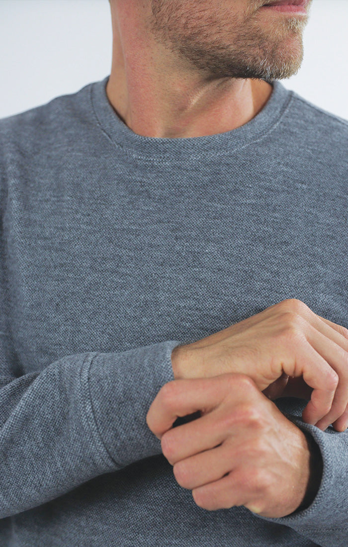 A long sleeve crewneck in a unique wool blend for added texture and warm.