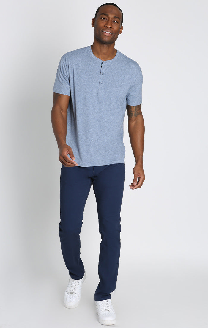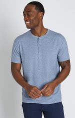 A soft and easy light weight polyester viscose blend fabric in a classic 3 button short sleeve henley.