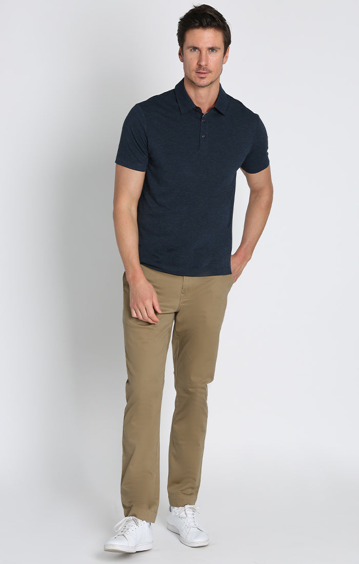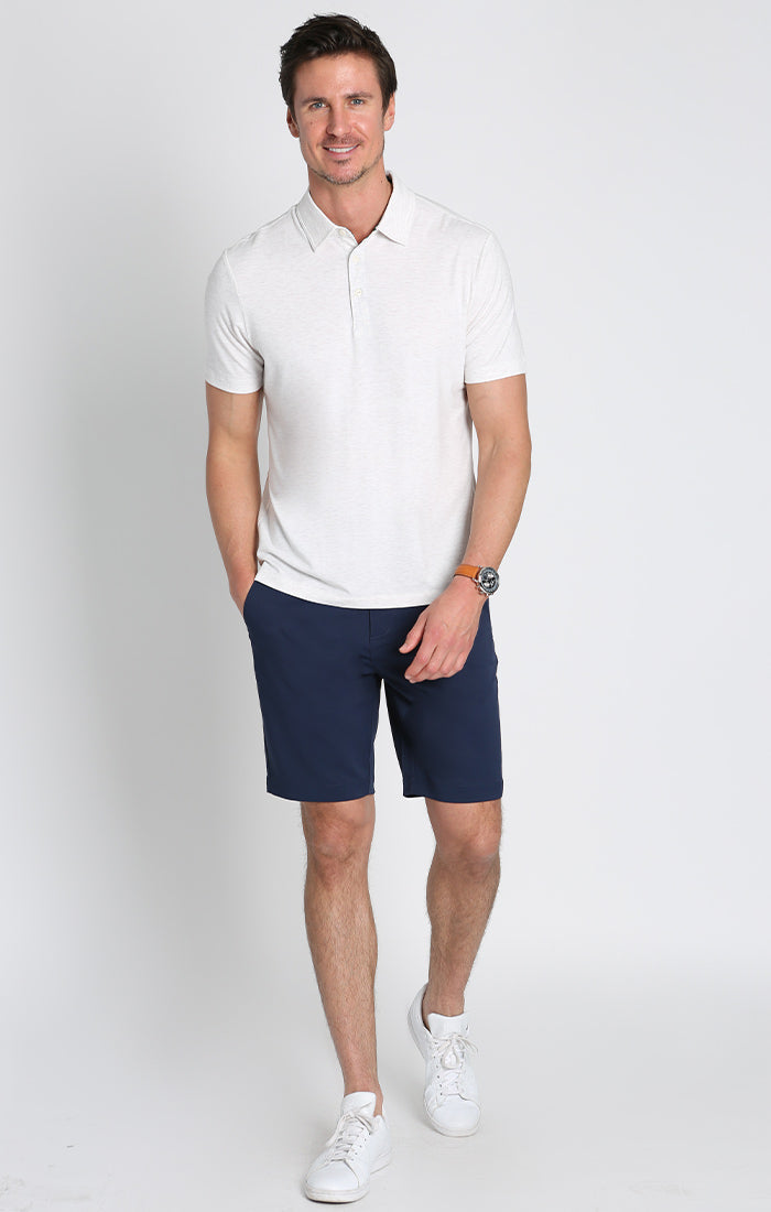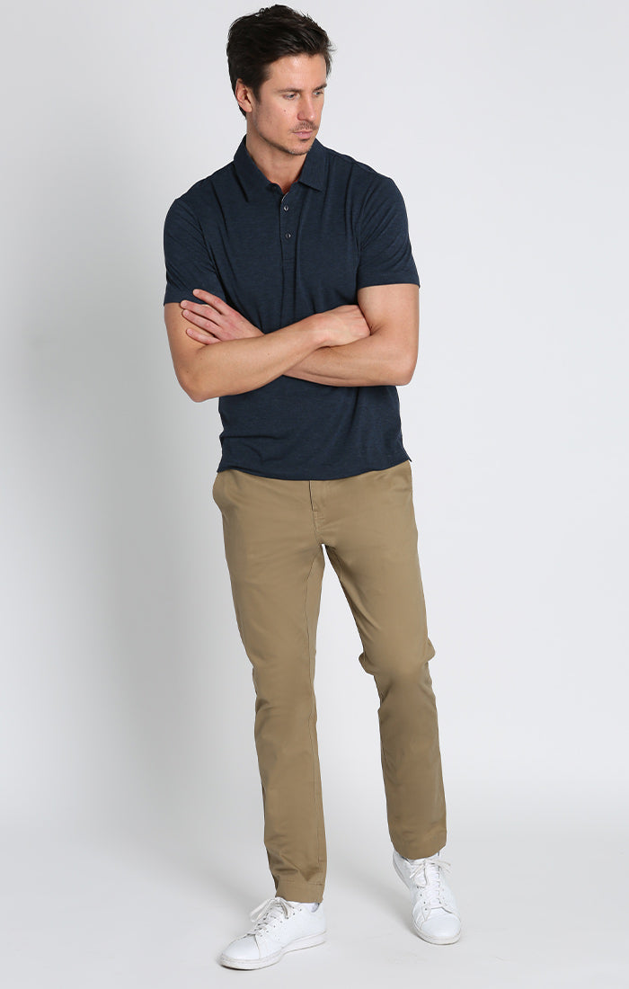 A soft and easy light weight polyester viscose blend fabric in a classic 3 button polo with added spandex.
